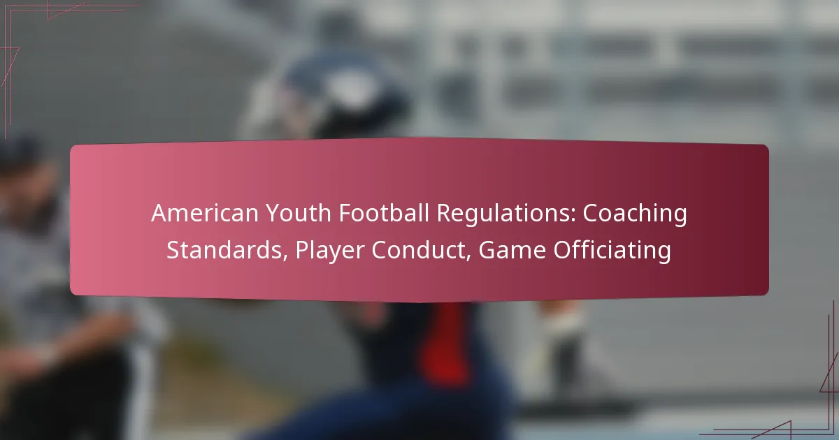 American youth football regulations are designed to create a safe and positive environment for young athletes through established coaching standards, player conduct expectations, and officiating guidelines. Coaches must be qualified and continuously trained to support player development, while players are encouraged to embody respect and sportsmanship both on and off the field. Additionally, officiating regulations ensure fair play and safety, with specific guidelines that vary by league to maintain the integrity of the game.